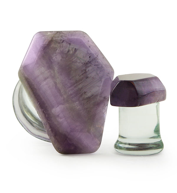 We carry an abundant selection of stone plugs and tunnels ranging in sizes from 8 gauge (3.2mm) all the way up to 3 inches (76mm). Our stone plugs and tunnels span the colors of the rainbow: amethyst, tiger’s eye, green aventurine, rainbow fluorite, grey agate, black obsidian, and more. Choose from double-flared or single-flared stone plugs, with flat, rounded, or concave sides. We also carry teardrop plugs and hoop plugs if you are looking for something different. Stone plugs are a beautiful and safe choice of jewelry for stretched ears as long as they are healed and not freshly stretched. Our stone plugs and tunnels offer something for every style, from the classic solid black stone plug to a flashy and dazzling labradorite plug.