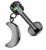 Black PVD Half Moon Dangle Black Aurora CZ Titanium Threadless Labret