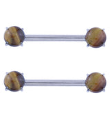 Double Tigers Eye Stone Threadless Titanium Nipple Barbells