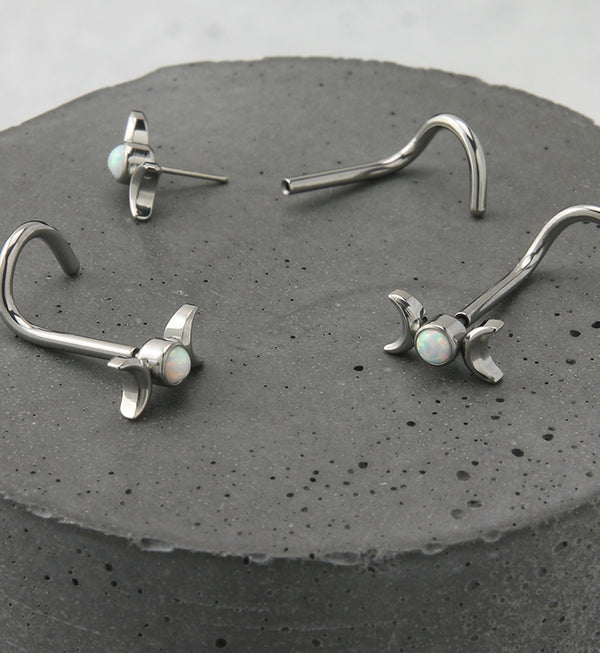 Double Half Moon White Opalite Titanium Threadless Nose Screw RingDouble Half Moon White Opalite Titanium Threadless Nose Screw Ring