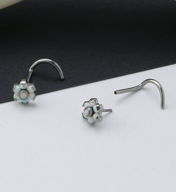 Flower White Opalite Titanium Nose Screw RingFlower White Opalite Titanium Threadless Nose Screw Ring
