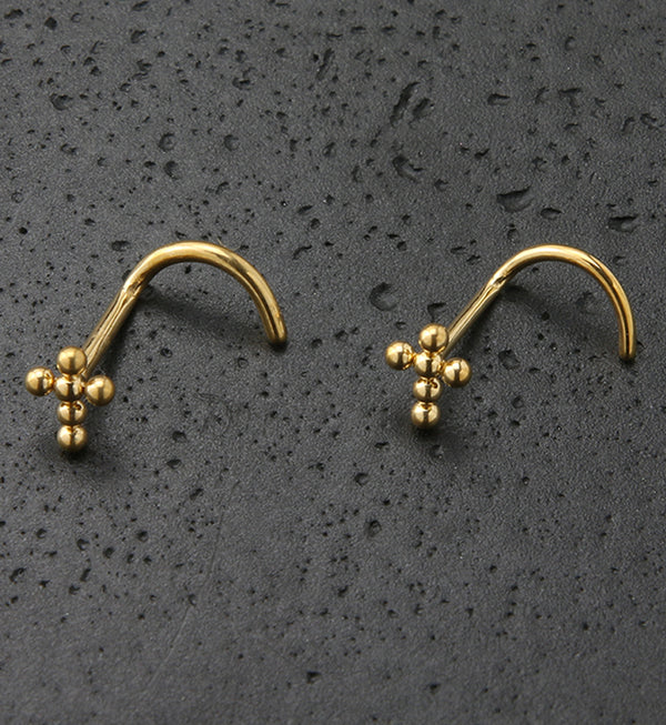 Gold PVD Beaded Cross Titanium Nose ScrewGold PVD Beaded Cross Titanium Nose Screw