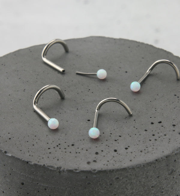White Opalite Ball Titanium Threadless Nose ScrewWhite Opalite Ball Titanium Threadless Nose Screw
