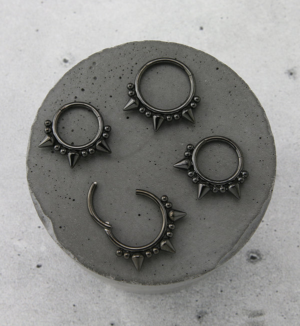 Black PVD Beaded Mini Spike Stainless Steel Hinged Segment RingBlack PVD Beaded Mini Spike Stainless Steel Hinged Segment Ring