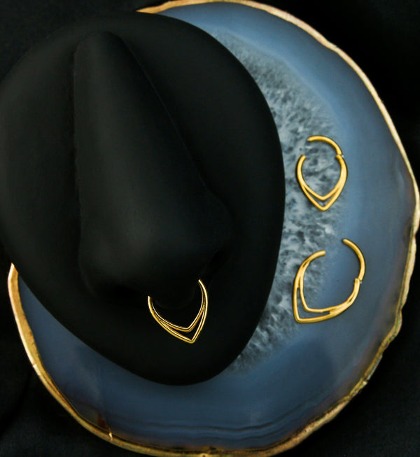 Gold PVD Double Hoop Teardrop CZ Titanium Hinged Segment RingGold PVD Double Hoop Teardrop CZ Titanium Hinged Segment Ring