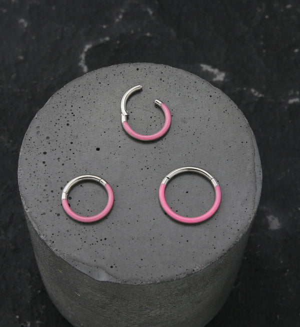 Pink Glow In The Dark Front Facing Titanium Hinged Segment RingPink Glow In The Dark Front Facing Titanium Hinged Segment Ring