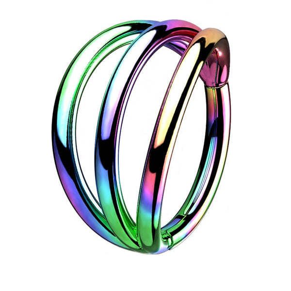 Rainbow Anodized Bead Titanium Hinged Segment RingRainbow Anodized Bead Titanium Hinged Segment Ring