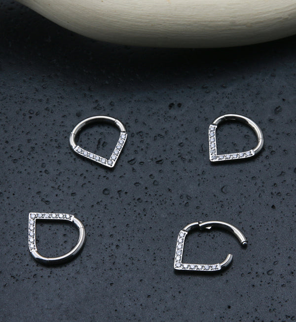 Double Hoop Teardrop CZ Titanium Hinged Segment RingDouble Hoop Teardrop CZ Titanium Hinged Segment Ring