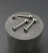 Classic threadless barbell with black aurora bezel set cubic zirconia gem top that measures at 5mm. Made from ASTM f-136 Titanium. Size is 14G. Length is 5/8" (16mm). Threadless design. Sold individually (1pc).