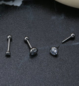 Classic threadless barbell with clear bezel set cubic zirconia gem top. Made from ASTM f-136 and Ti-6AL-4V-ELI Titanium. Choose your size: 18G or 16G. Sold individually. For healed piercings.