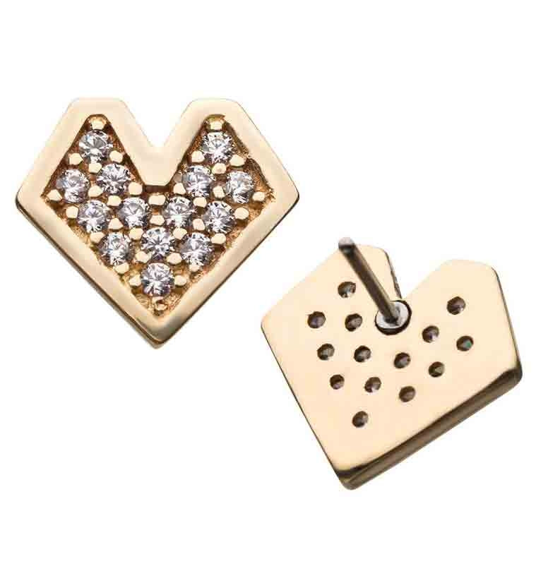 Sold individually (1 piece - top only) 14kt gold Threadless Heart size: 7.5mm x 8.5mm 316LVM stainless steel pin Designed to fit the barbells/labrets below Threadless Barbell Threadless Labret