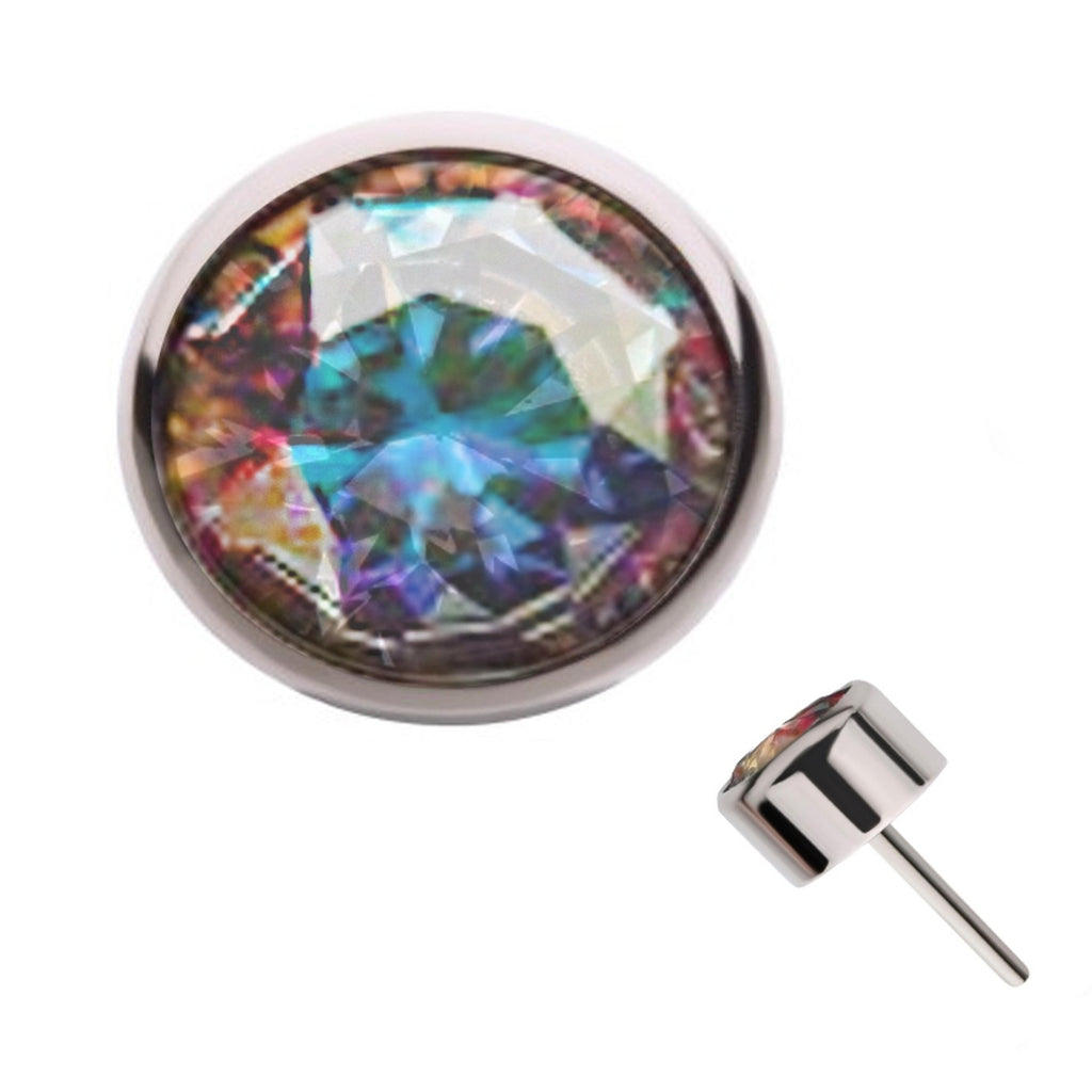 Rainbow Aurora CZ Flat Bezel Titanium Threadless Top