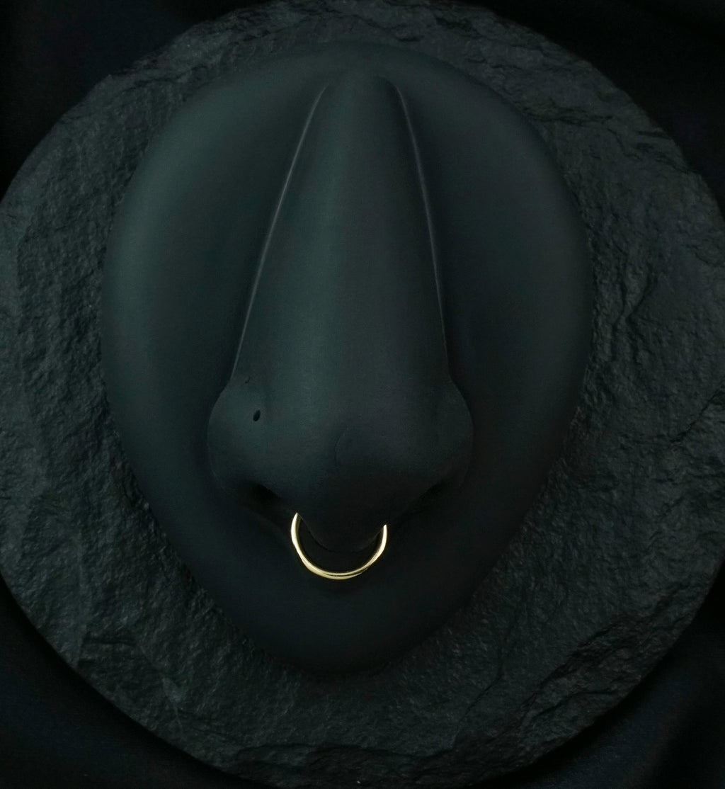 Available in various sizes, this solid 14kt gold piece features a hinged design for easy and comfortable wear. This piece is a great choice for septum, nostril, and cartilage piercings. Sold individually.