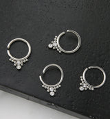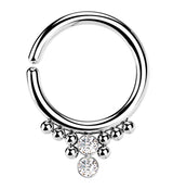Beautiful seamless hoop ring with a beaded design and 2 sparkling cz gems along the bottom. These annealed (bendable) options are made from 316L stainless steel. Choose your size from 18G and 16G. Diameter size is 5/16" (8mm). Sold individually (1 pc).