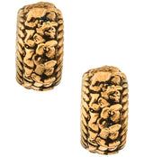 These textured rose gold brass hinged ear lobe cuffs are great for healed lobes/piercings. Sold in pairs (2pcs), the cuffs feature a hinged design for easy opening and closing and an inner diameter of 3/8" (10mm) and total diameter of 9/16" (14mm). Gauge size is 0G (8mm) so must be 0G (8mm) or bigger to wear. They're ideal for wearing with other hinged rings or ear weights, or simply for wearing on their own. The rose gold brass material is not meant for long term wear and may oxidize under extreme conditions.