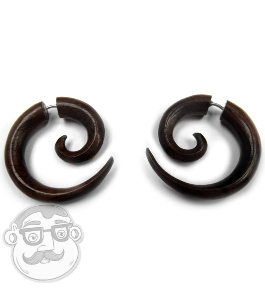 Sono Wood Fake Gauge Spirals Tribal Earrings (19G - 0.9mm)