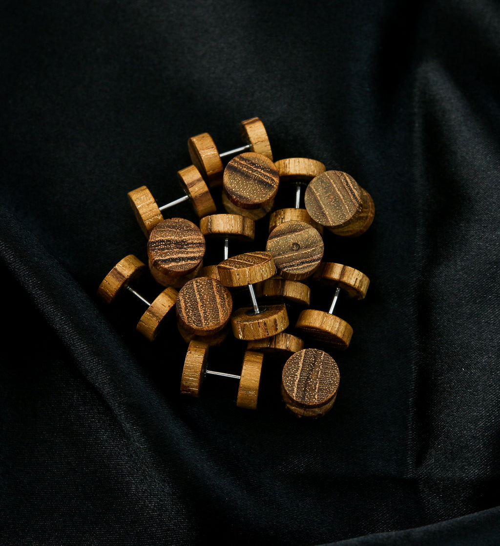 These fake plug earrings are made from natural teak wood and have a flat, polished surface. Each piece has an 18G, externally threaded, 316L stainless steel pin for easy insertion and take out. The wooden piece measures 10mm in diameter. With no pin or ball fitting connection, each piece gives the look of having already stretched / gauged ears. For healed piercings/lobes. Sold in pairs (2pcs).
