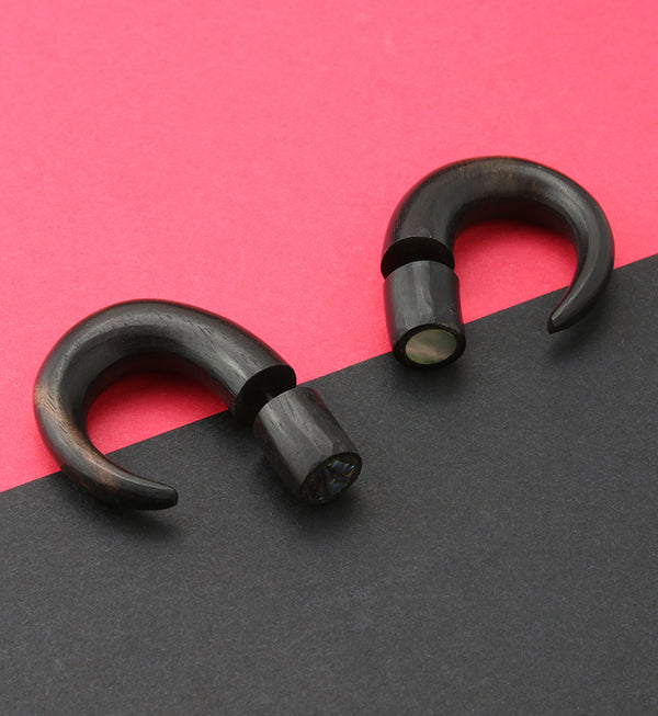 Areng Wood Fake Gauge MOP Shell Tapers Tribal Earrings