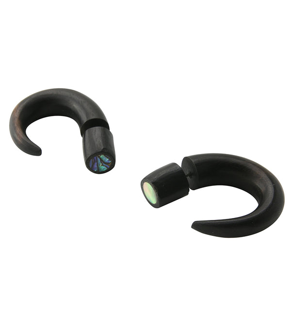 Saba Wood Fake Gauge Abalone Inlay Circular Tapers Tribal EarringsSaba Wood Fake Gauge Abalone Inlay Circular Tapers Tribal Earrings