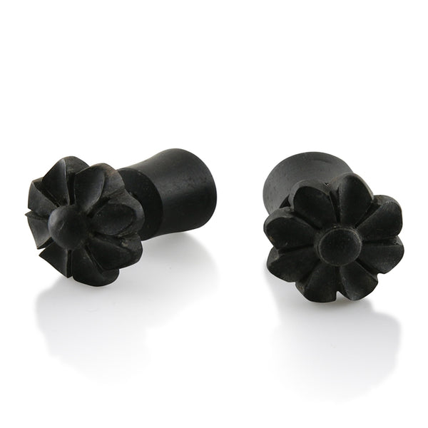 Sold outCarved Daisy Wooden Fake Gauge Plugs