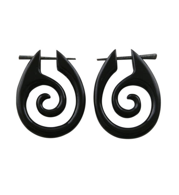 Sold outBroad Areng Wood Fake Gauge Spiral EarringsBroad Areng Wood Fake Gauge Spiral Earrings