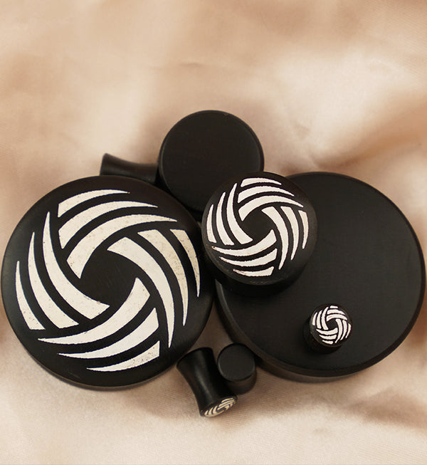 Etched Mandala Areng Wood Tunnel PlugsEtched Mandala Areng Wood Tunnel Plugs