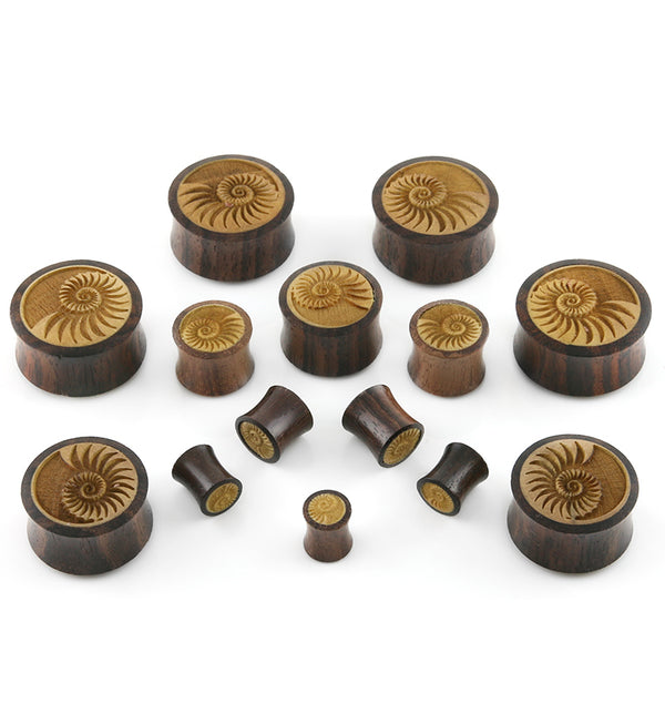 Sono Wood Plugs With Engraved Seashell InlaySono Wood Plugs With Engraved Seashell Inlay