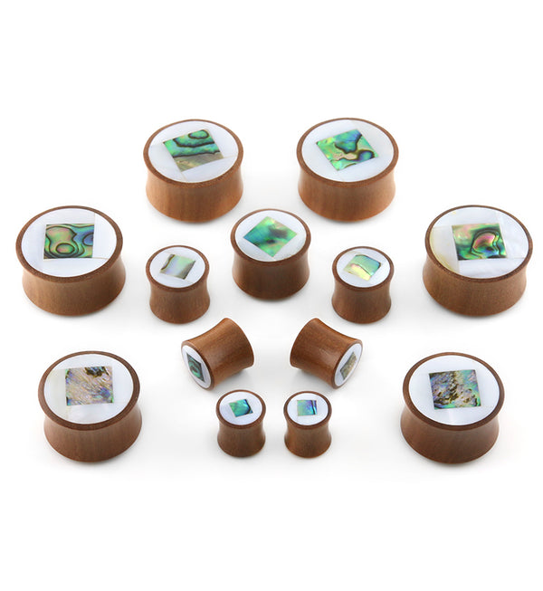 MOP & Squared Abalone Shell Inlayed Saba Wood PlugsMOP & Squared Abalone Shell Inlayed Saba Wood Plugs