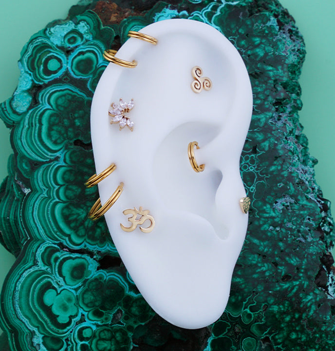 While charms aren’t used directly in a piercing, they can hang from any kind of cartilage hoop ring. Charms give you the opportunity to express yourself through body jewelry without the hassle of getting a brand-new piercing.