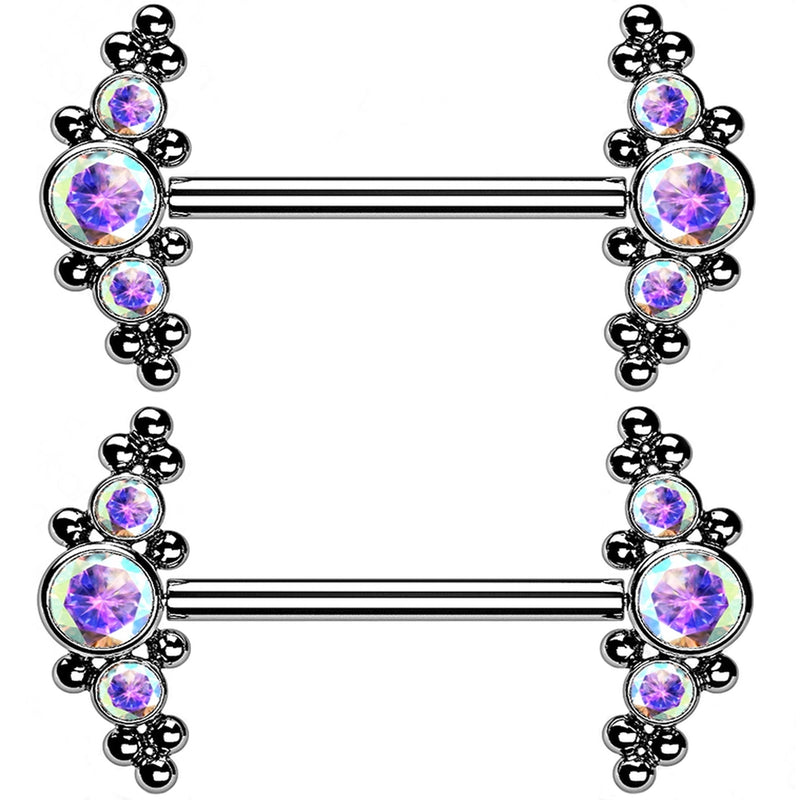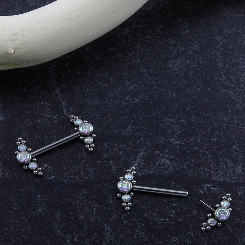 14G Beaded Rainbow Aurora CZ Titanium Threadless Nipple Ring Barbells