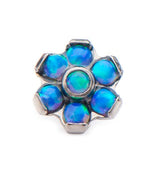 This titanium bezel end features a stunning synthetic blue opal and is internally threaded for easy insertion and secure hold. Sold individually, it is available in 16G. Made from ASTM F136 Titanium and is a fun, interchangeable top option.