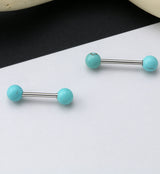 14G Double Turquoise Howlite Stone Stainless Steel Barbell