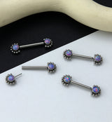 14G Encirc Double Purple Opalite Threadless Titanium Nipple Ring Barbell