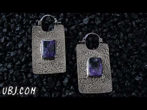 14G Obverse Charoite Stone White Brass Hangers - Earrings