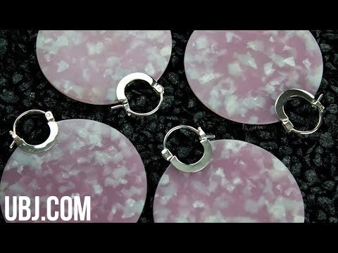 Sold in pairs (2pc) Size: 14 gauge Sterling silver clasps Acetate disk Free shipping Disk size: 70mm X 70mm Brass & silver are not meant for long term wear May oxidize under extreme moisture conditions
