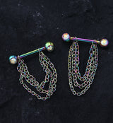 14G Rainbow PVD Rainbow Aurora CZ Chained Nipple Rings Barbell