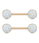 14G Rose Gold PVD White Druzy Nipple Ring Barbell