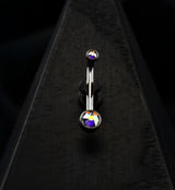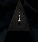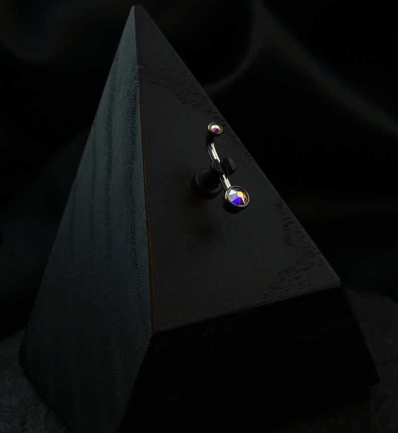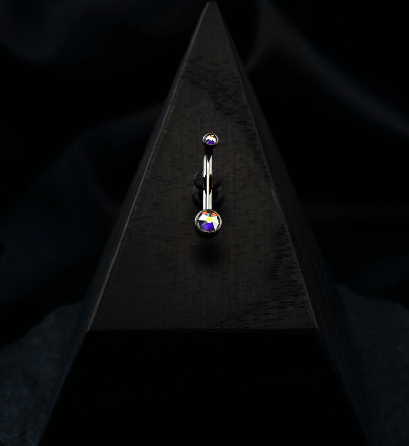Add iridescent shine with our rainbow aurora CZ clitoral hood bar! The 14g barbell is constructed from ASTM F-136 titanium l with two cz gems and internal threading for a secure fit. Ball ends features rainbow aurora Swarovski gems for pearlescent pop! The gems measure 2.5mm and 4mm. This style is designed specifically for vertical clitoral hood piercings. Choose your preferred length using the drop-down menu below. Sold individually, hit the plus sign to order multiples!
