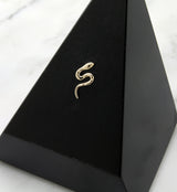 Snake shaped threadless top piece with beautiful markings etched in it. Made from 14kt nickel-free gold with a 316LVM stainless steel pin. Size is approx. 12mm x 5.8mm. Sold individually (1pc, top only).