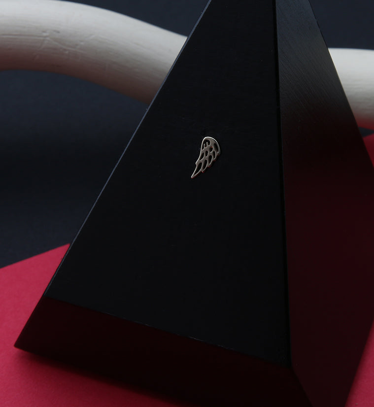 Pretty 14kt nickel-free gold angel wing top piece. Made for left ear. 316LVM ASTM F-138 stainless steel pin. Sized at 7mm x 3.5mm. Sold individually (1 piece - top only).