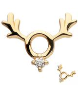 Threadless top piece that has a reindeer head design accented with a clear cz gem. Fits all threadless posts. Made from 14kt nickel-free gold with a 316L stainless steel pin. Length is approximately 5mm. Top measures 8mm x 6mm. Sold individually (1pc, top only).