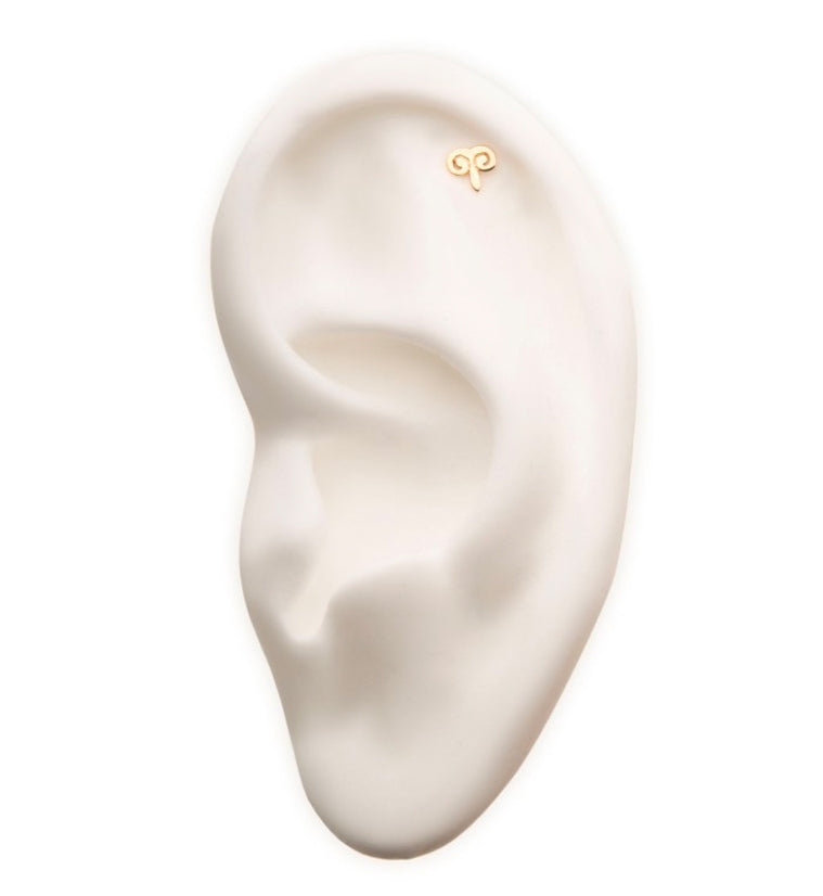 Sold individually (1 piece - top only) 14kt gold Threadless Aries - March 21 to April 19 316LVM stainless steel pin Size: 5.1mm x 4.9mm Designed to fit the barbells/labrets below Threadless Labret Threadless Barbell