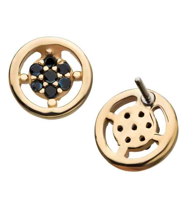 Sold individually (1 piece - top only) 14kt gold Threadless Size: 6.5 316LVM stainless steel pin Designed to fit the barbells/labrets below Threadless Barbell Threadless Labret