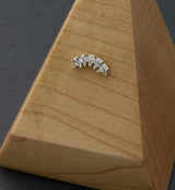 Threadless top piece that has a curved cz design that is filled with teardrop, clear cz gems and accented beads throughout and on the ends. Fits all threadless posts. Made from 14kt nickel-free gold with a 316L stainless steel pin. Pin size is 25G. Length is approximately 6mm. Top size is about 11mm x 4mm. Sold individually (1pc, top only).