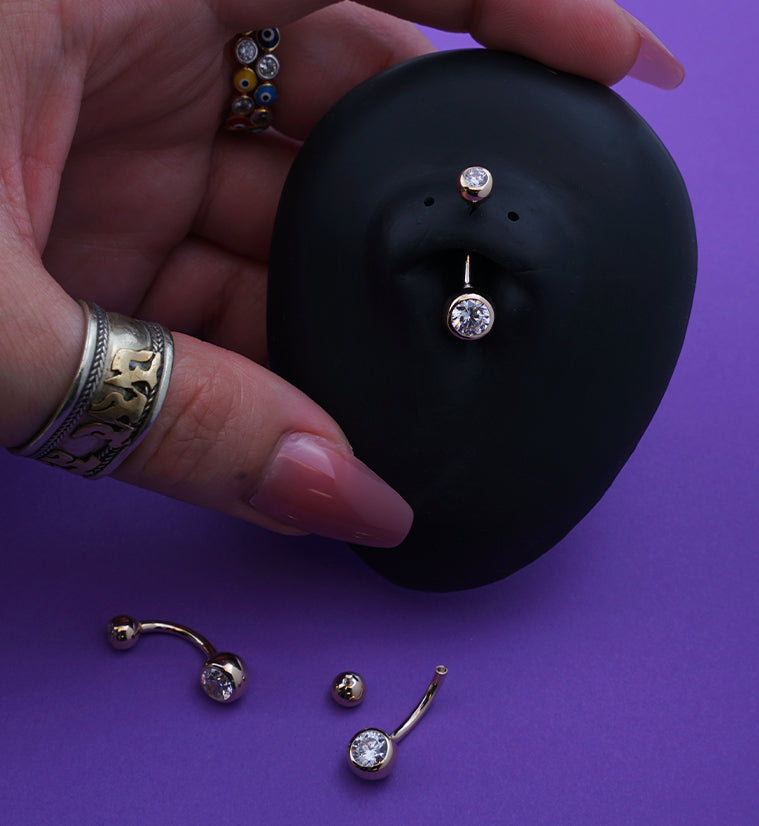 14kt Gold Bezel Clear CZ Internally Threaded Belly Button Ring