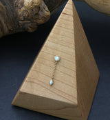 Threadless top piece that has a bezel set round synthetic white opal gem with a dangling marquise synthetic white opal gem. Fits all threadless posts. Made from 14kt nickel-free gold with a 316L stainless steel pin. Pin size is 25G. Length is approximately 6mm. Size is about 17.5mm x 3.5mm. Sold individually (1pc, top only).