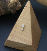 Threadless top piece that has a bezel set round clear cz gem with a dangling round cz gem. Top CZ is 3mm and bottom CZ is 2.5mm. Fits all threadless posts. Made from 14kt nickel-free gold with a 316L stainless steel pin. Pin size is 25G. Length is approximately 6mm. Size is about 7.5mm x 4mm. Sold individually (1pc, top only).