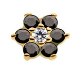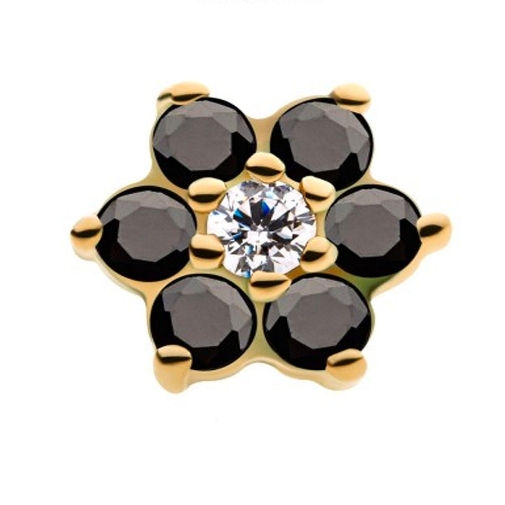 14kt Gold Black & Clear CZ Flower Threadless Top