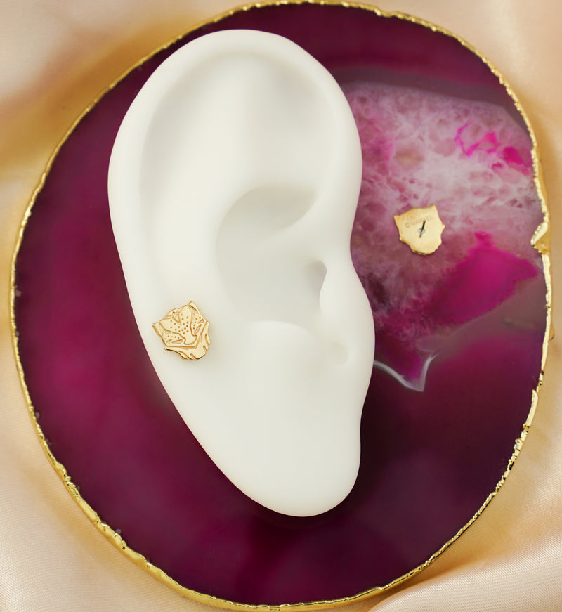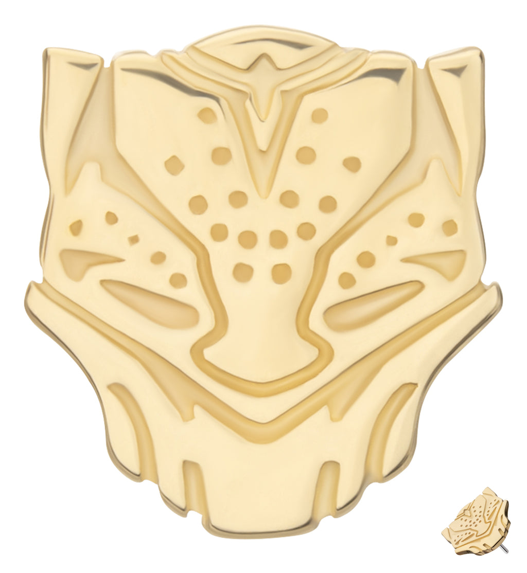 Threadless top piece that has the Black Panther logo as the top design. This jewelry piece is made with 14kt nickel-free yellow gold and a 316LVM ASTM F-138 5mm stainless steel pin. Fun choice for Marvel fans! Amazing jewelry option for a variety of ear piercings! Sold individually (1pc).