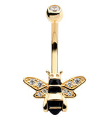 14kt Gold Bumblebee Clear CZ Belly Button Ring